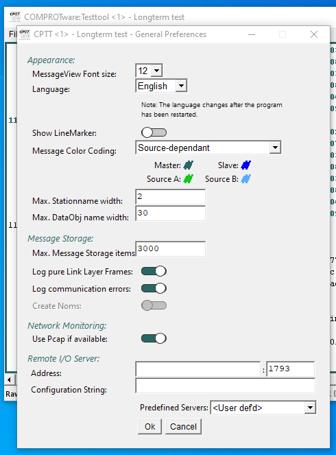 Filterung angegeben werden, sodass schon vor der Übertragung vom RIO-Server zu CPTT der mitgehörte Datenverkehr reduziert werden kann.