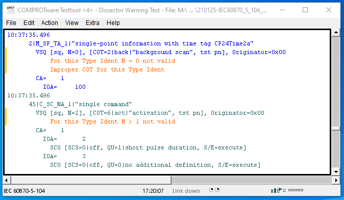 Dissektor: Es wird jetzt eine Warnung angezeigt, wenn eine für eine Typkennung unzulässige Gemeinsame Adresse oder unzulässige Informationsobjektadresse verwendet wird.
