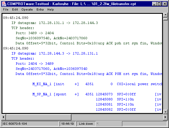 IEC 60870-5-104 wird als allgemeines Übertragungsprotokoll zwischen Leitsystemen und Unterstationen (RTUs, Remote Terminal Units) eingesetzt. Es besitzt allgemeine Fähigkeiten im Rahmen von SCADA-Anwendungen.